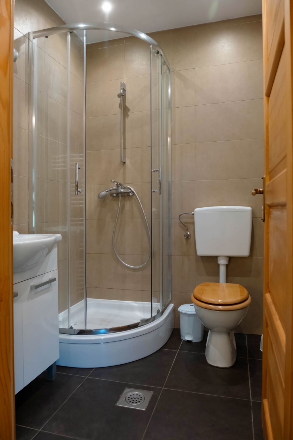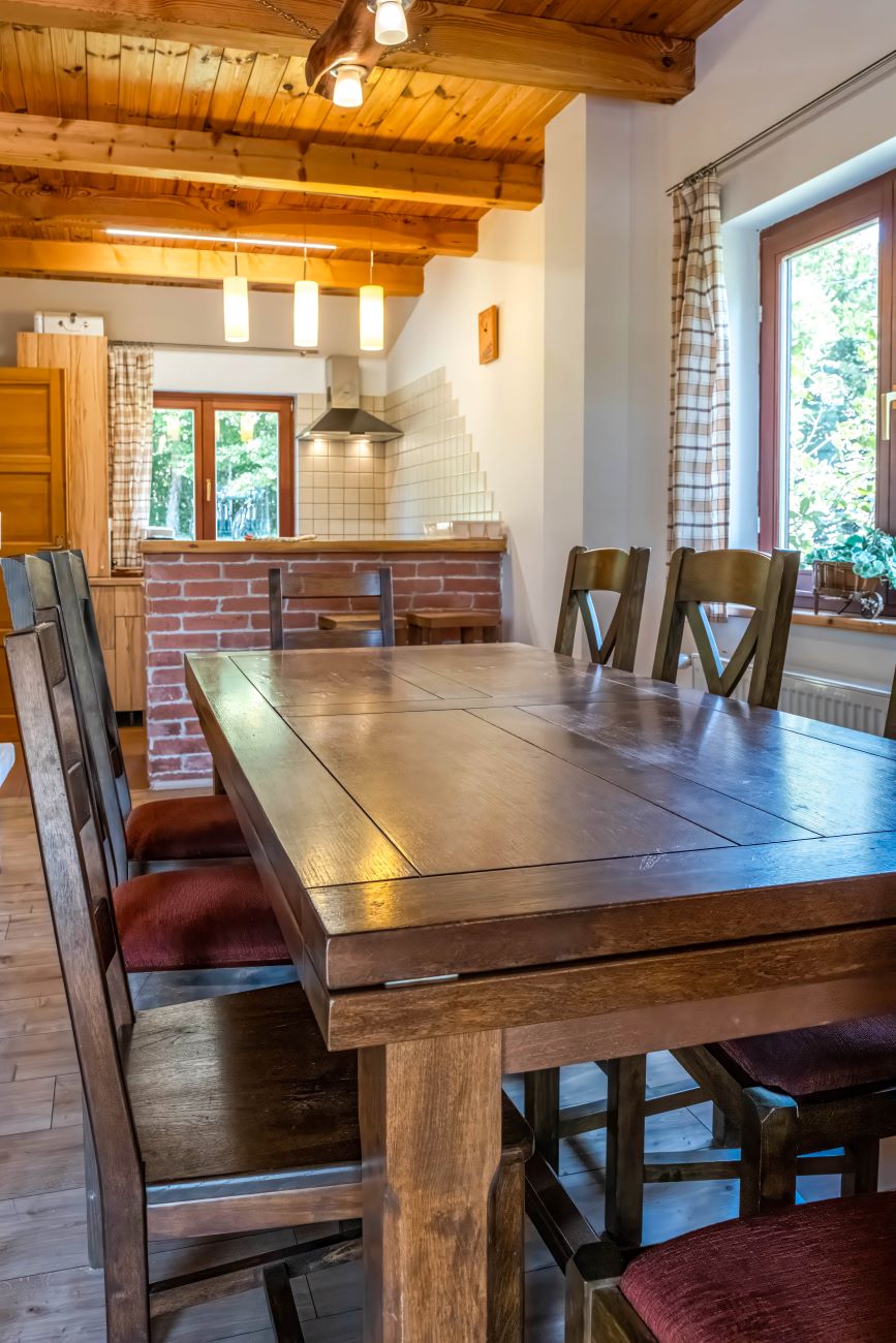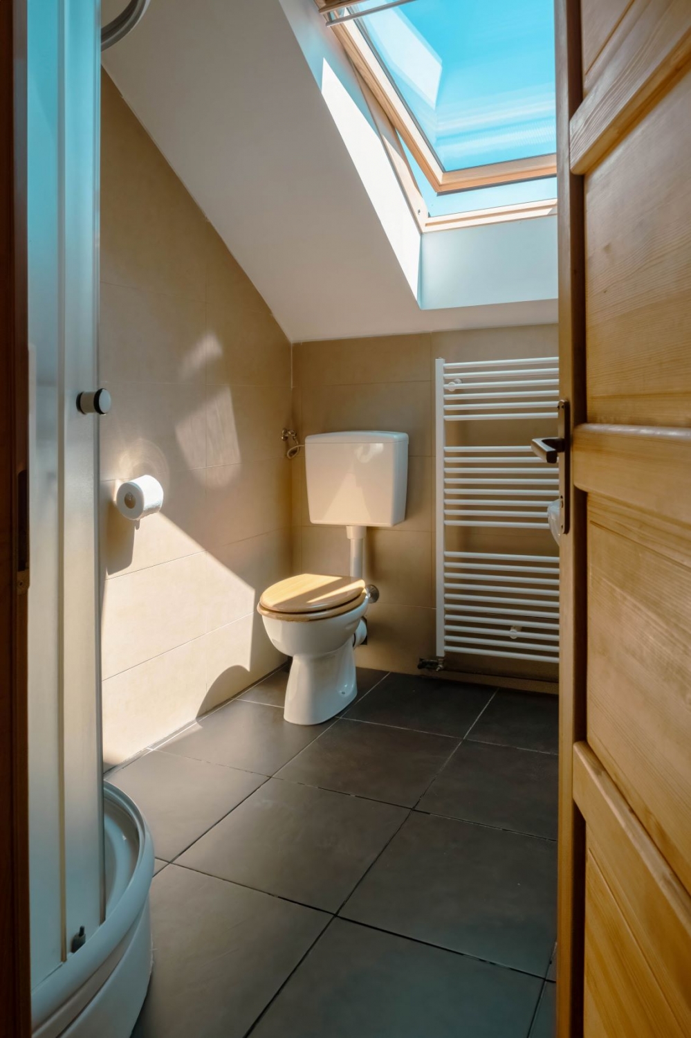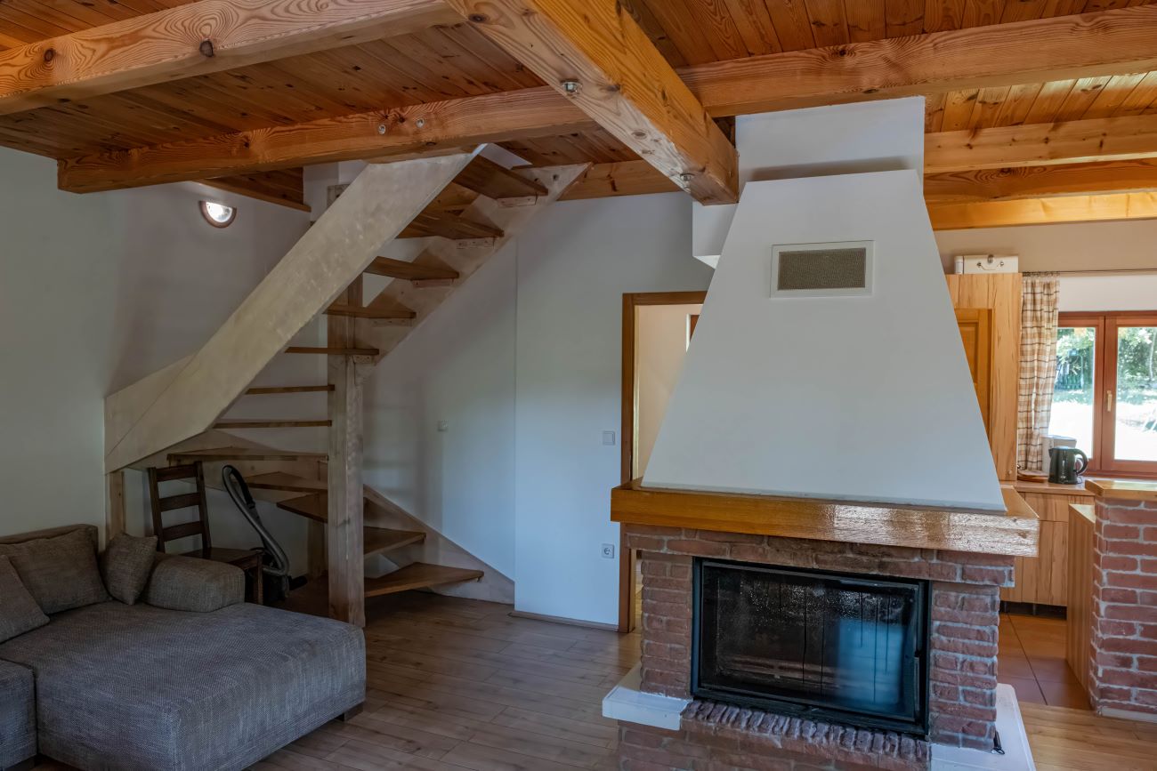 Dem Besucher stehen zwei Etagen zur Verfügung. Das Erdgeschoss verfügt über ein Wohnzimmer mit Essebereich und einer Sitzecke, die durch einfachen Umbau auch 2 Extrabetten beinhaltet. Weiters steht eine voll ausgestattete Küche bereit sowie ein einladendes Badezimmer mit Dusche. Der erste Stock verfügt über 3 Schlafzimmer ausgestattet mit Doppelbetten und einem Extrabett sowie einem Badezimmer. Eine große Terrasse lädt im Erdgeschoss zum Verweilen ein, während im Oberstock die Aussicht vom Balkon aus genossen werden kann. Jedes Haus ist über mit der Feuerstelle im Erdgeschoss verbundene Radiatoren leicht beheizbar. Geschützt direkt hinter dem Haus befindet sich ein offener Grill. Die Häuser eignen sich für 4 bis 9 Personen oder zwei Familien mit Kindern.