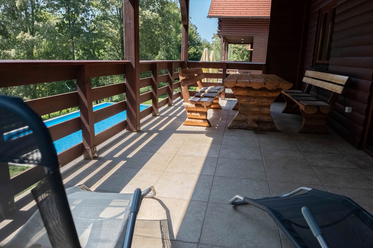 Ökotourismus Mreznica beherbergt 4 Häuser in Blockhausbauweise, welche auf einer Anhöhe direkt über dem Fluss Mreznica liegen. Der Komplex ist eingebettet in einen kleinen Birken und Eichenwald, während die Dorfhäuser abgelegen liegen.